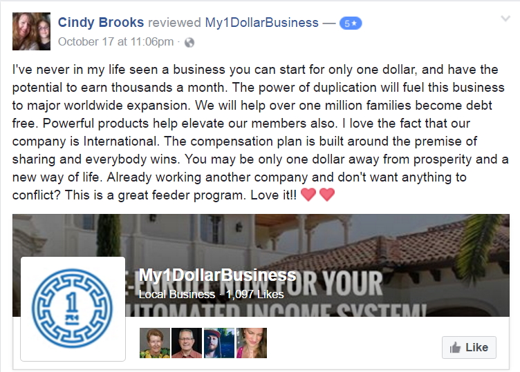 ~ Tony F Can't go wrong with $1 Biz that potentially becomes $1000/m income!